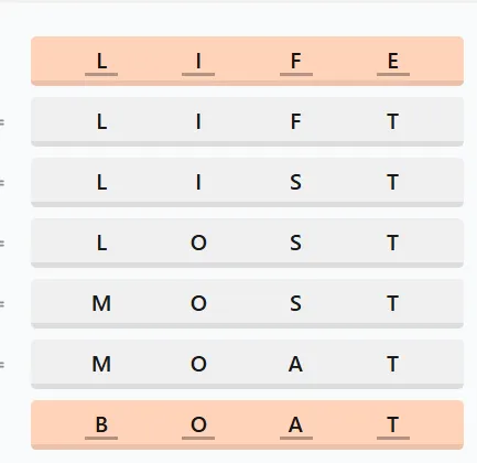- LinkedIn Crossclimb #582 are LIFE, LIFT, LIST, LOST, MOST, MOAT, BOAT