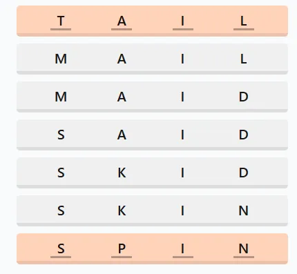 - LinkedIn Crossclimb #597 are TAIL, MAIL, MAID, SAID, SKID, SKIN, SPIN