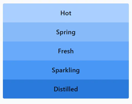 | Spring | Spring: Forms Spring water, water sourced from a natural spring. |